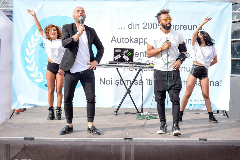 - momente originale de entertainment: artisti romani in voga, dansatori profesionisti, DJ Kiss Fm, MC Tom.