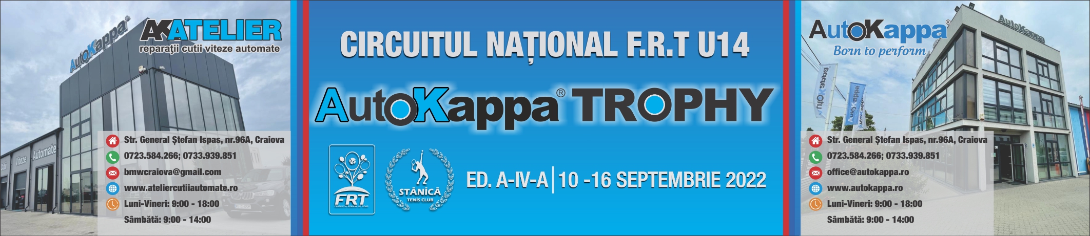 Autokappa Trophy continua ca in fiecarea deshiderea sezonului de toamna al competitiilor organizate la Tenis Club Stanica. Pornind de la mottoul „Born To Perform”, avem placerea de a organiza si anul acesta in parteneriat cu Federatia Romana de Tenis (F.R.T.) si Tenis Club Stanica: Autokappa Trophy - Editia a-IV-a.